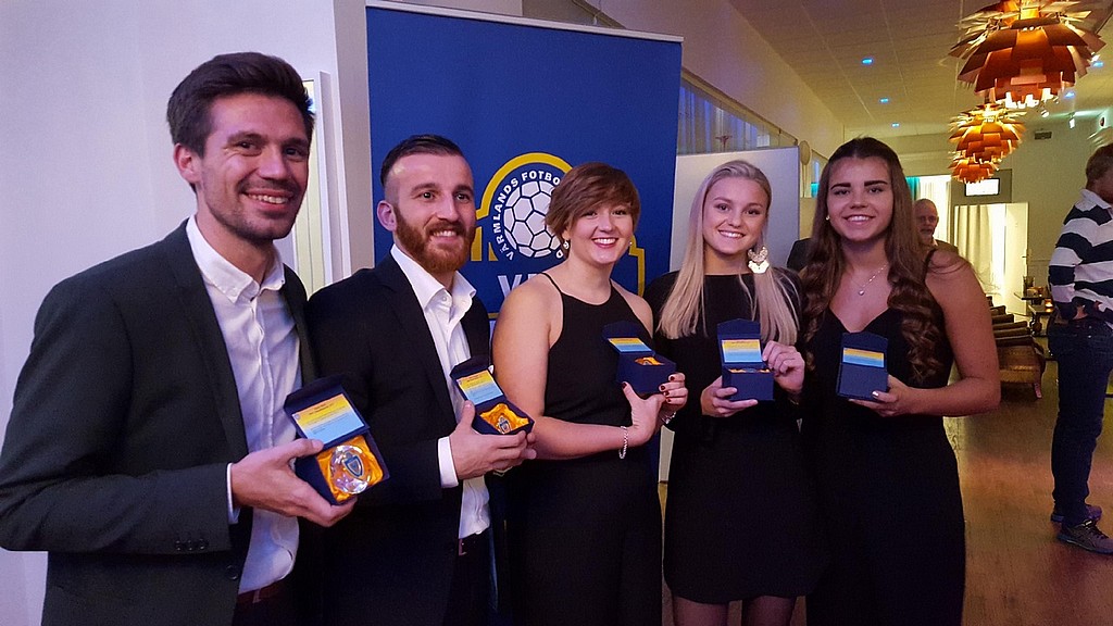 Hertzöga BK hade en stor kväll i fredags på Värmlands Fotbollförbunds Fotbollsgala i Arvika. Hertzöga BK blev Årets Förening 2017, för andra året i rad och till det tog vi 5 individuella priser. Årets mv blev Johanna Gunnarsson, Årets back blev Tom Larsson och Ellen Abrahamsson och årets forward blev Dawood Bethio Yako och Wilma Borr. Stort Grattis till oss Alla.