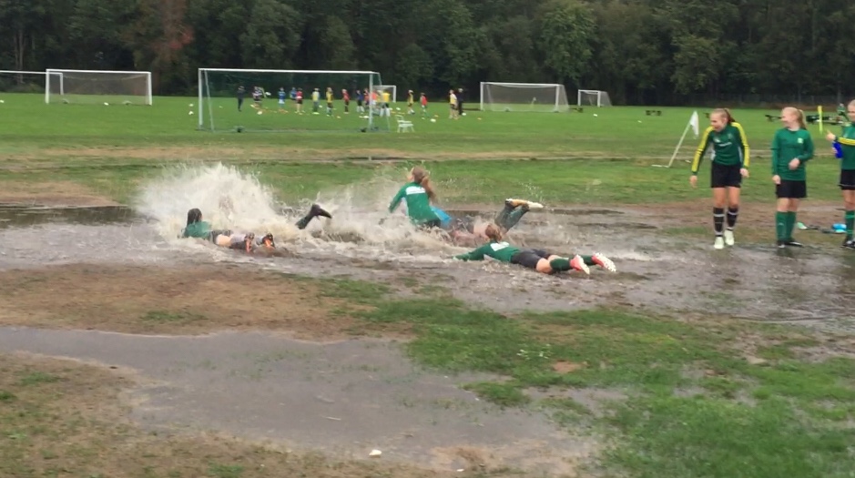 Bilden är från träningen i ösregnet i torsdags. Gött väder att träna målgester i. Idag var det bättre väder i premiären för oss på det nylagda konstgräset på ilanda. En trevlig upplevelse. Gamla gräset hade gjort sitt och var mer som parkett efter alla år. Inbjudande att rulla boll idag med andra ord. Speciellt i andra halvlek får vi upp snacket och vi är tydliga hur och var vi vill ha bollen. Många spelare är delaktiga och bidrar till fina anfall och kombinationer. Matchen slutar med vinst 9-0. Efteråt var det go-pizza och iväg på jobb för att dra ihop pengar till lagkassan. Bra jobbat hela vägen !