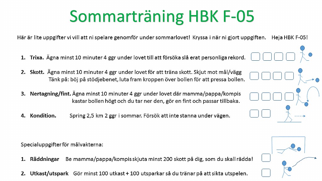 Under sommaruppehållet kommer vi erbjuda frivillig träning dessa datum på Ilanda:
